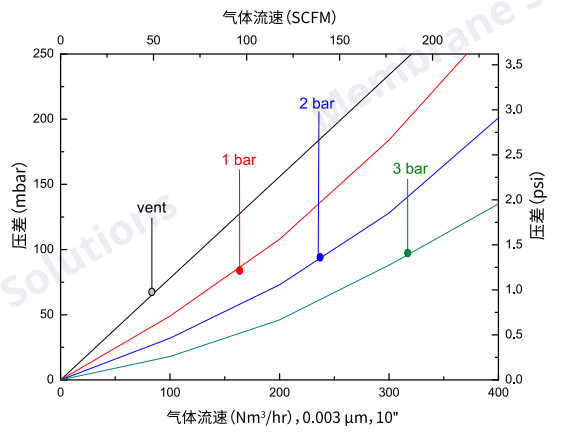 *測(cè)試氣體為壓縮空氣,測(cè)試壓力vent,1bar,2bar,3bar為出口壓力。
